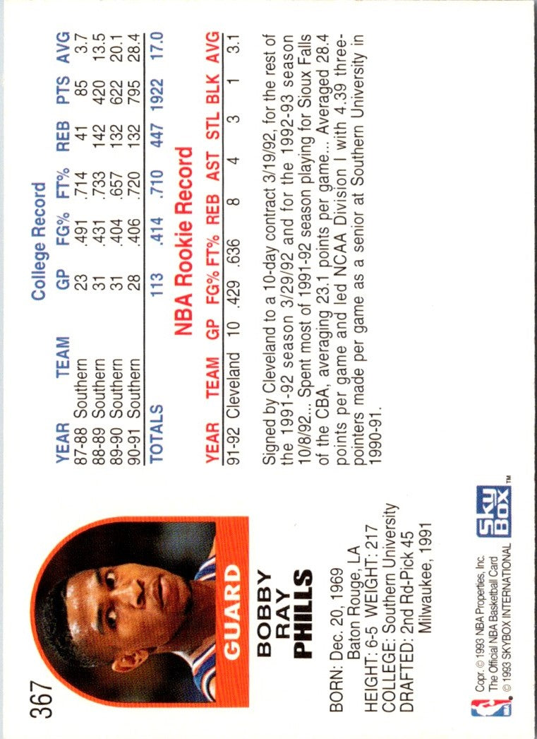 Description: 1992 Hoops Bobby Phills #367 Rookie