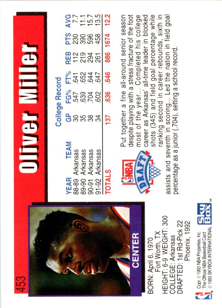 Description: 1992 Hoops Oliver Miller #453 Rookie