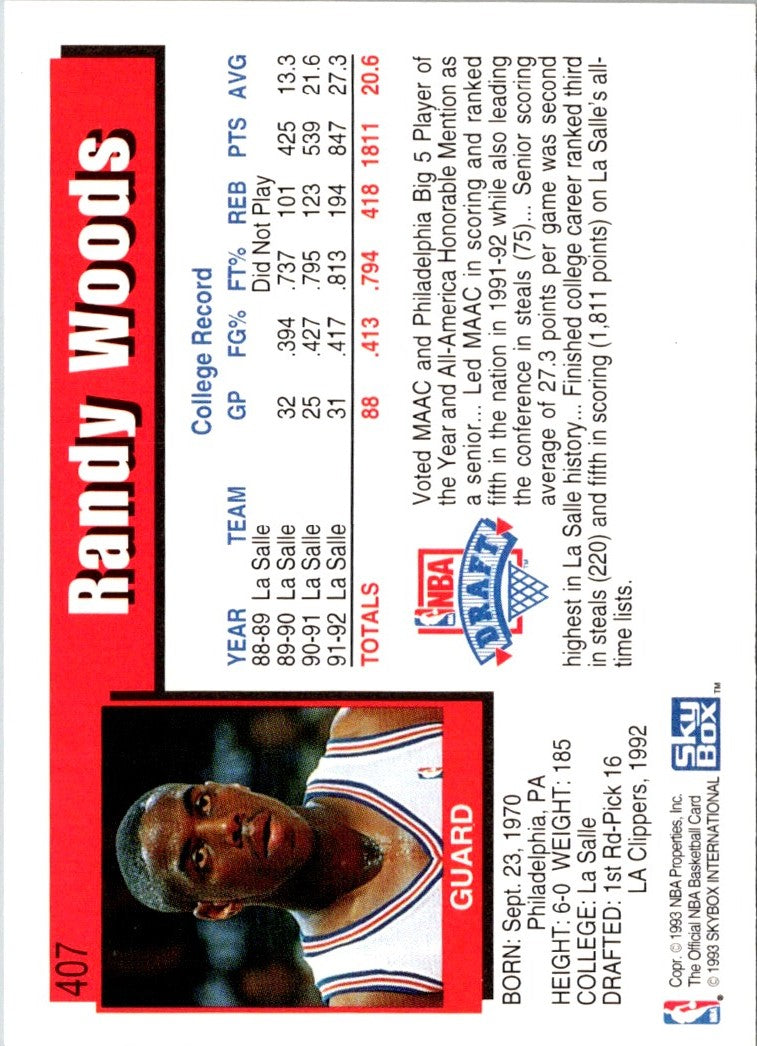 Description: 1992 Hoops Randy Woods #407 Rookie