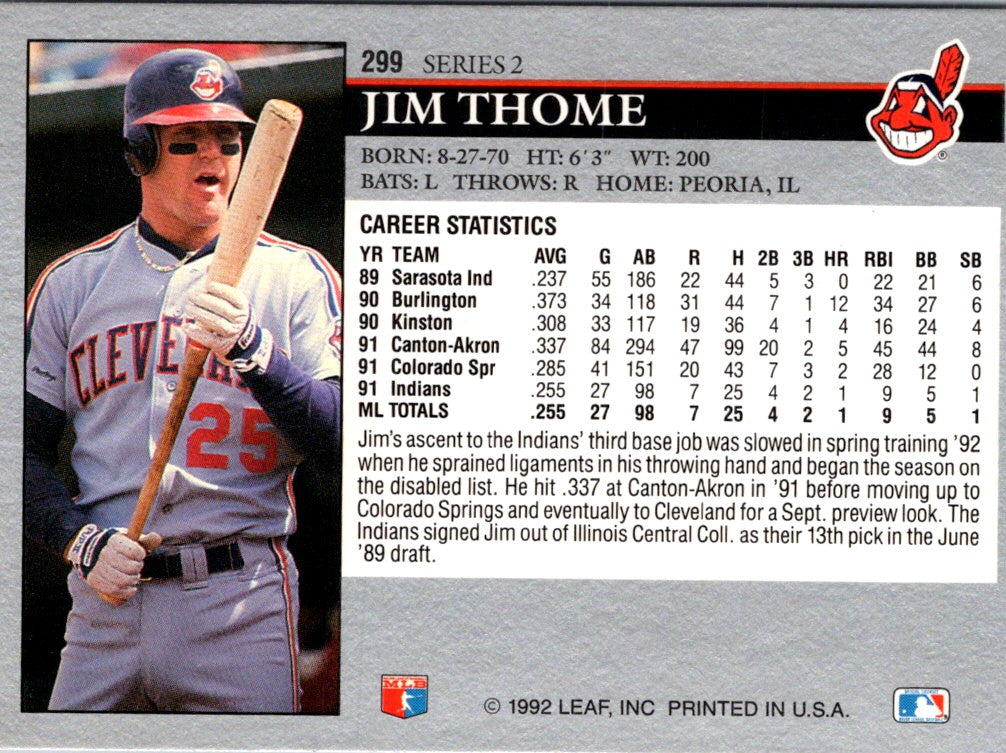 Description: 1992 Leaf Black Gold Jim Thome #299