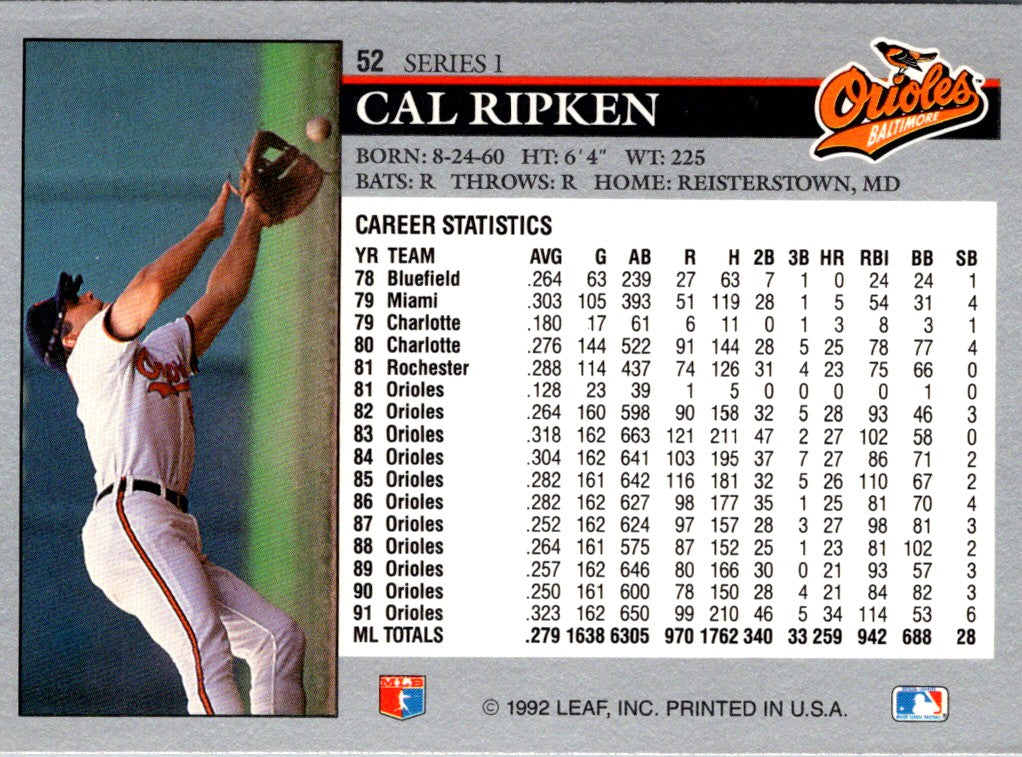 Description: 1992 Leaf Cal Ripken Jr. #52