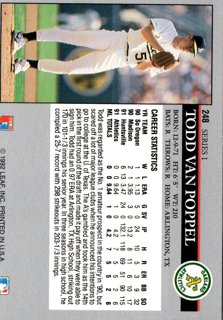 Description: 1992 Leaf Todd Van Poppel #248