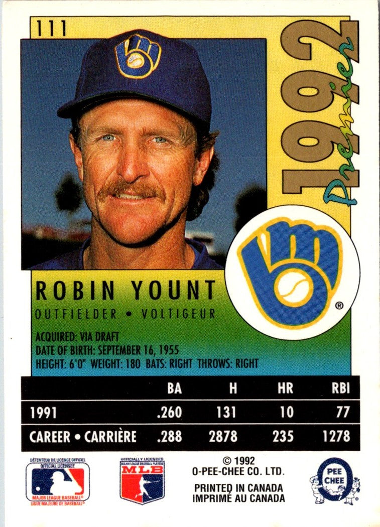 Description: 1992 O-Pee-Chee Premier Robin Yount #111