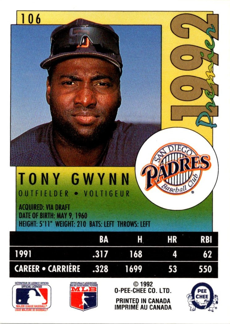 Description: 1992 O-Pee-Chee Premier Tony Gwynn #106