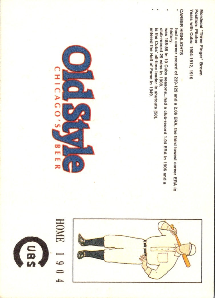 Description: 1992 Old Style Chicago Cubs Mordecai Brown #NNO