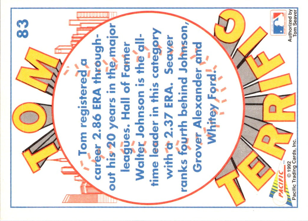 Description: 1992 Pacific Seaver Tom Seaver (4th Best ERA All-Time) #83