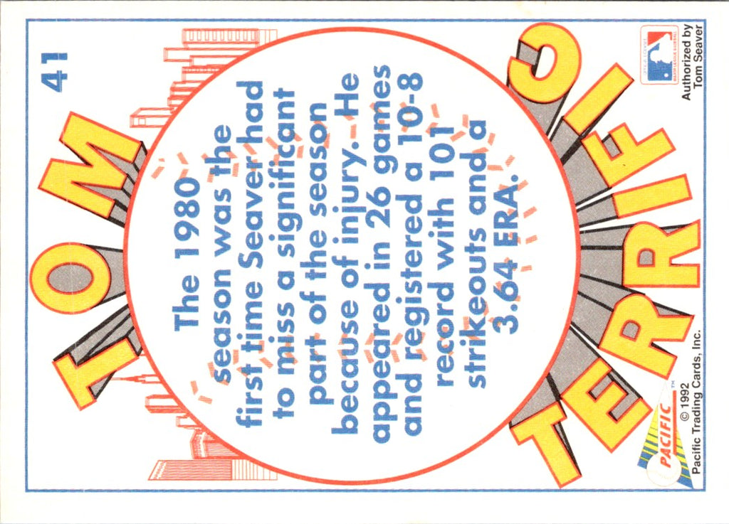 Description: 1992 Pacific Seaver Tom Seaver (Injury Shortened Season) #41