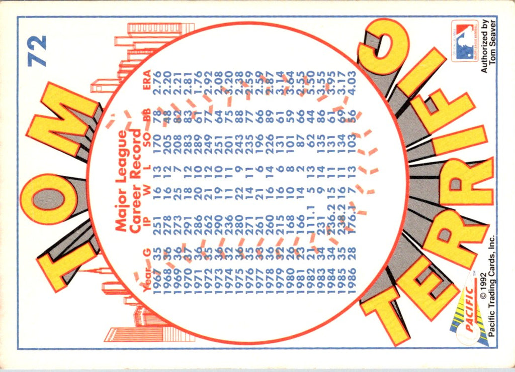 Description: 1992 Pacific Seaver Tom Seaver (Pitching in Comiskey Park) #72