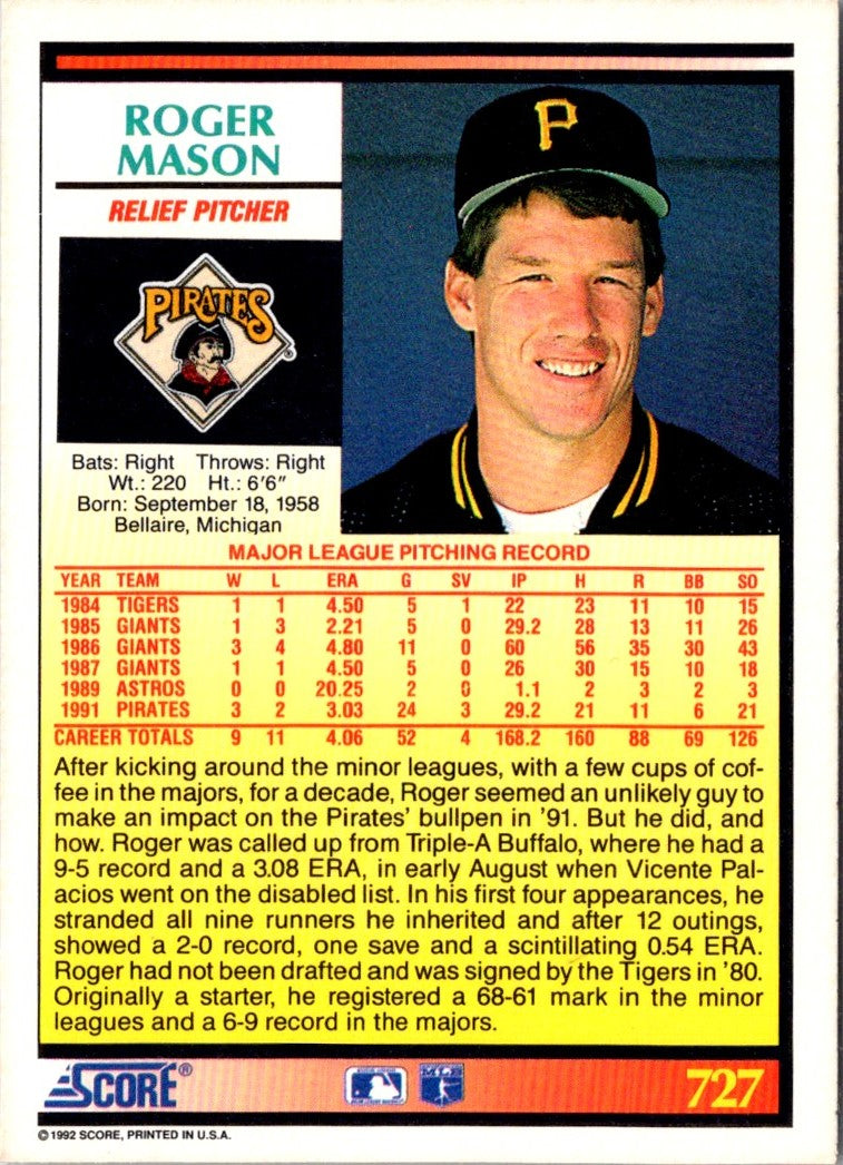 Description: 1992 Score Roger Mason #727