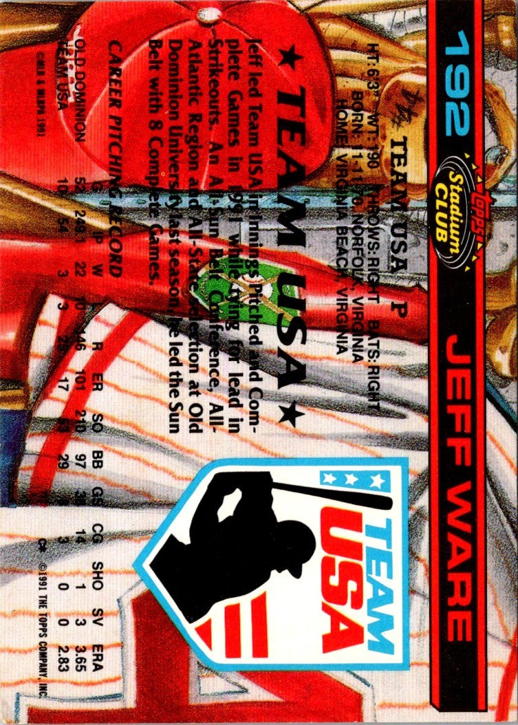 Description: 1992 Stadium Club Dome Jeff Ware #192