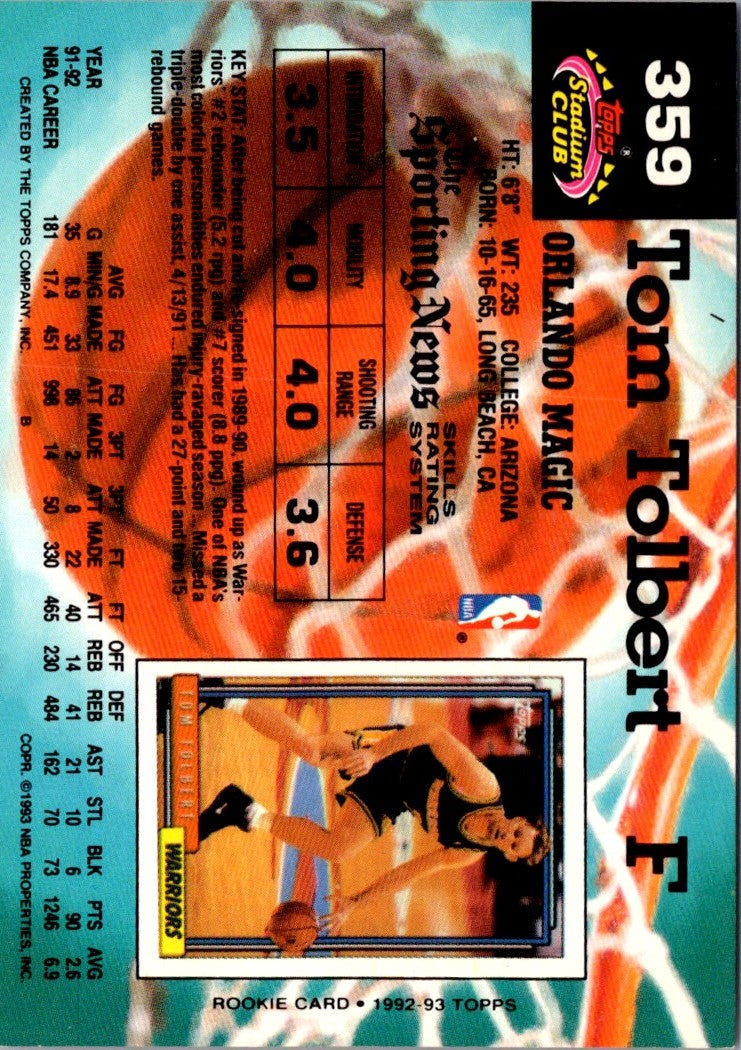 Description: 1992 Stadium Club Members Only Tom Tolbert #359
