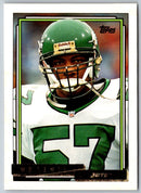 The 1992 Topps Mo Lewis #273 New York Jets card is a great addition to any sports card collection. Featuring the veteran linebacker in his signature Jets uniform, this card offers a chance to own a piece of NFL history. The full-color photography and classic Topps design will be a great reminder of the days when Mo Lewis was terrorizing opposing offenses. With an affordable price, this card is a must-have for any Jets fan.