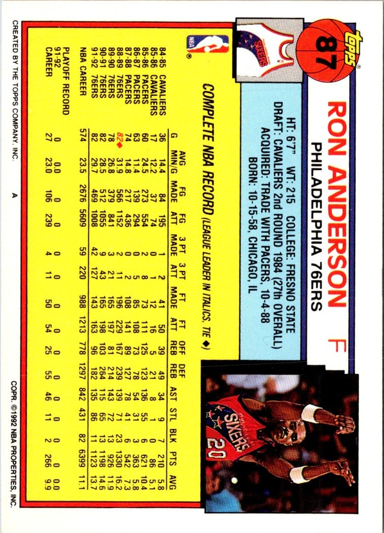 Description: 1992 Topps Ron Anderson #87