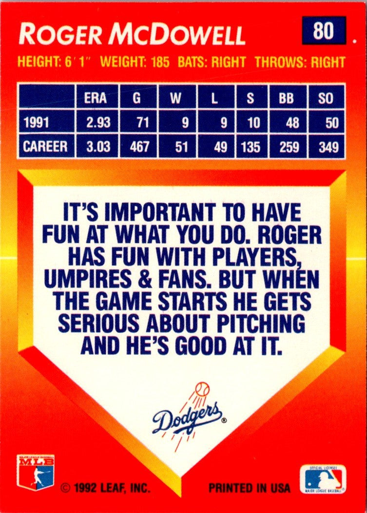 Description: 1992 Triple Play Roger McDowell #80