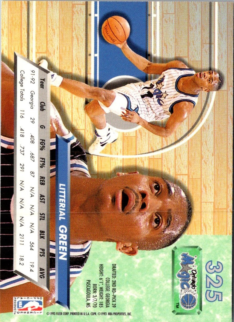 Description: 1992 Ultra Litterial Green #325 Rookie