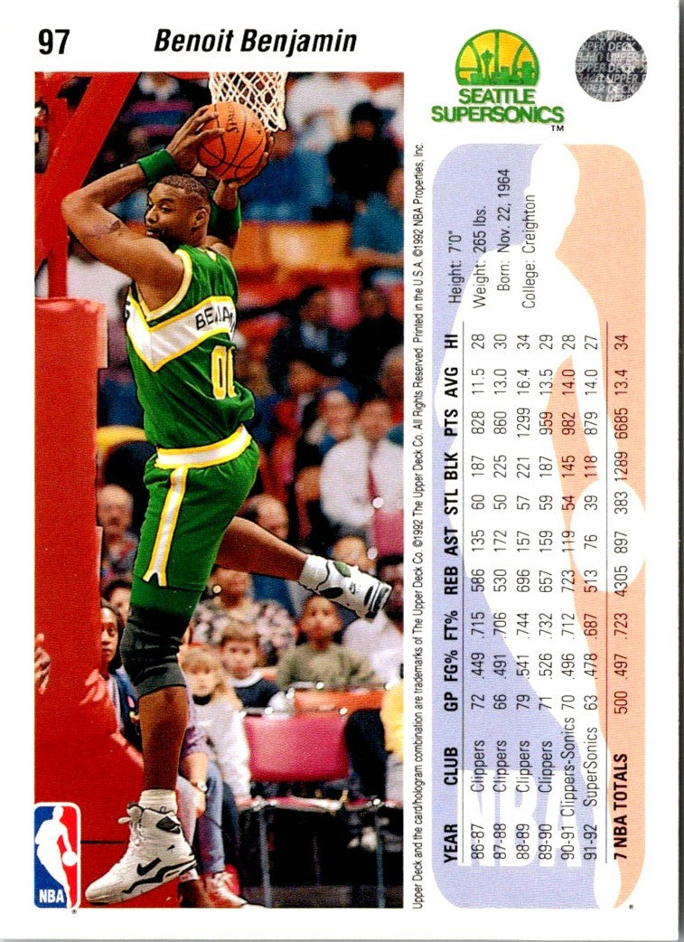 Description: 1992 Upper Deck Benoit Benjamin #97