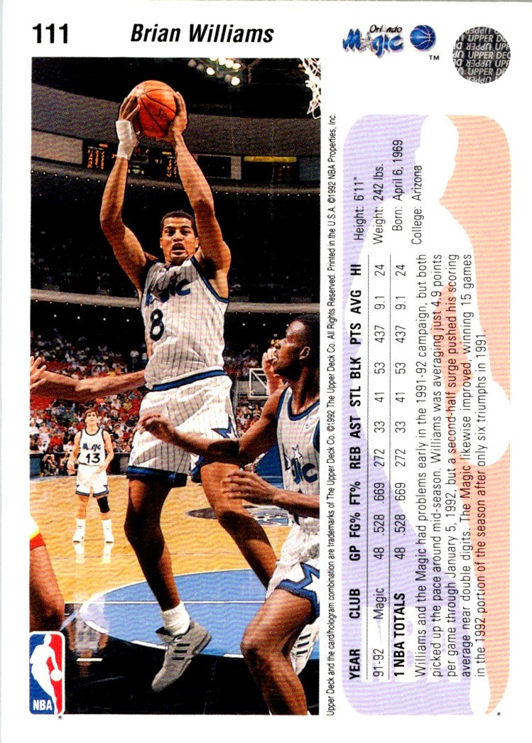 Description: 1992 Upper Deck Brian Williams #111