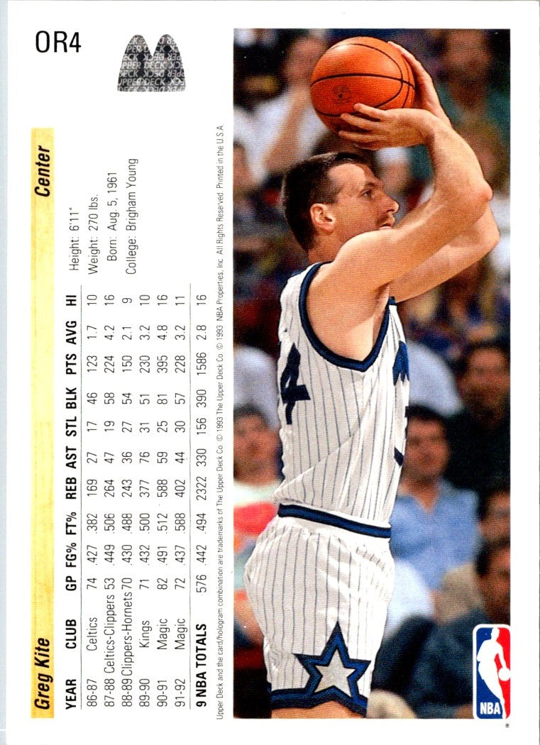 Description: 1992 Upper Deck McDonald's Orlando Magic Greg Kite #OR4