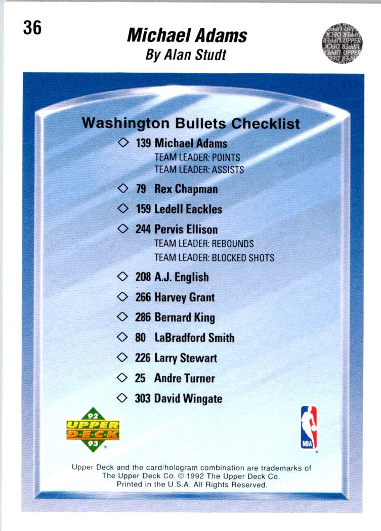 Description: 1992 Upper Deck Michael Adams #36