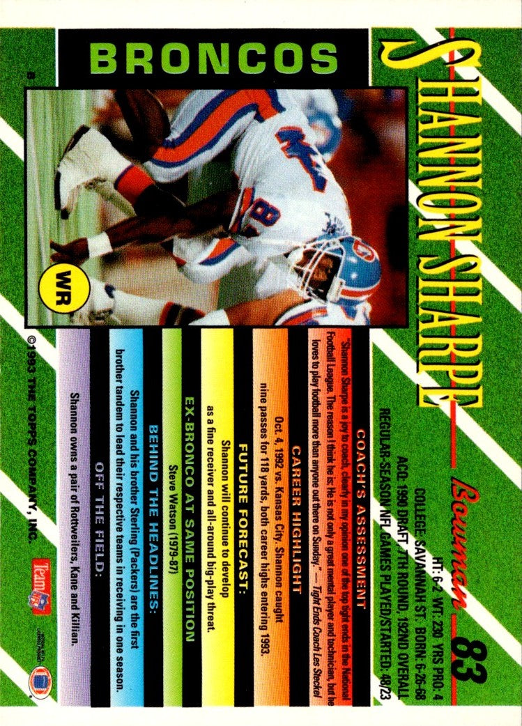 1993 Bowman Shannon Sharpe #83