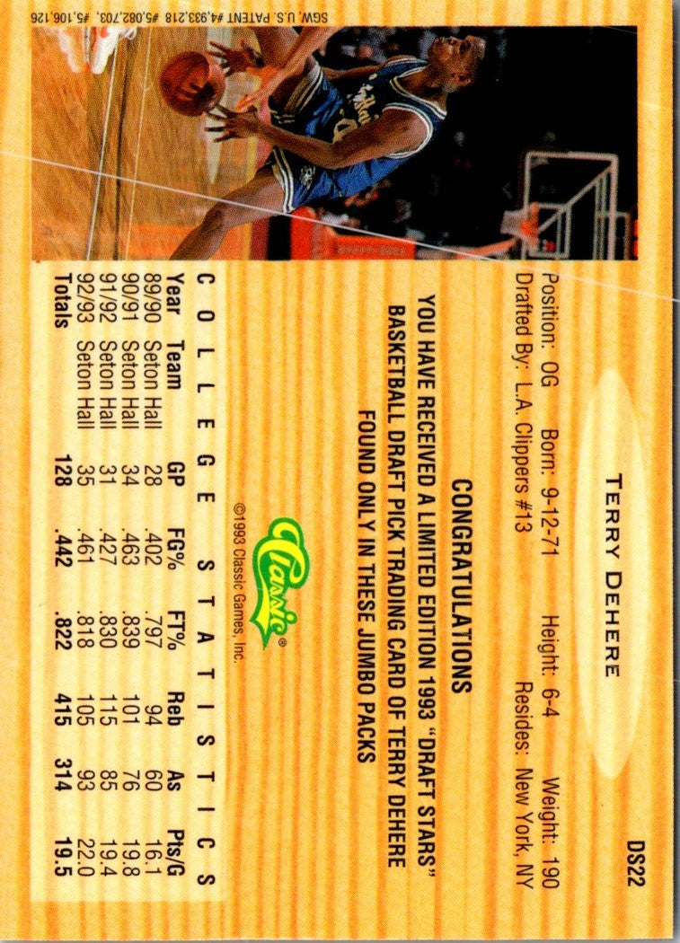 Description: 1993 Classic Draft Picks Chromium Stars Terry Dehere #DS22