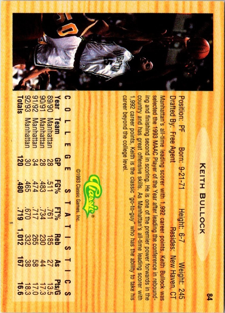 1993 Classic Draft Picks Keith Bullock #84