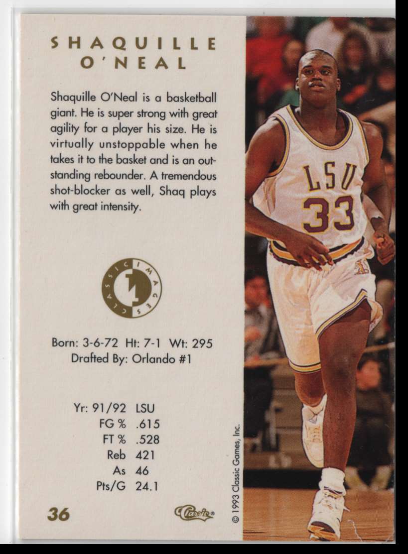1993 Classic Draft Picks Shaquille O'Neal #104