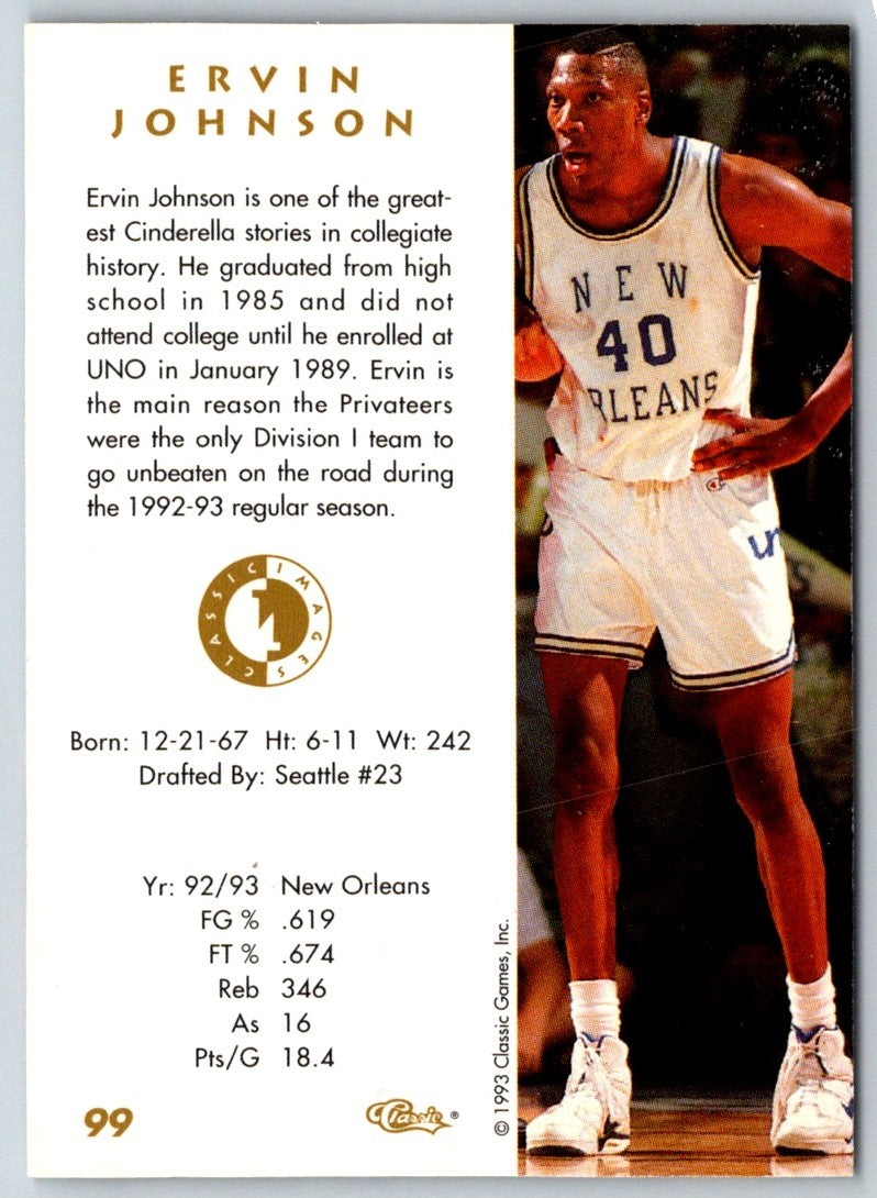 The 1993 Classic Ervin Johnson #99 is a must-have for any basketball fan. Featuring the classic design from the 1993 season, this jersey is made of durable polyester and features a sewn-on logo patch and name and number. The jersey is lightweight and breathable for a comfortable fit, and the bold colors and sleek design will be sure to make you stand out. Get your hands on this classic piece of basketball history and show your support for Ervin Johnson!