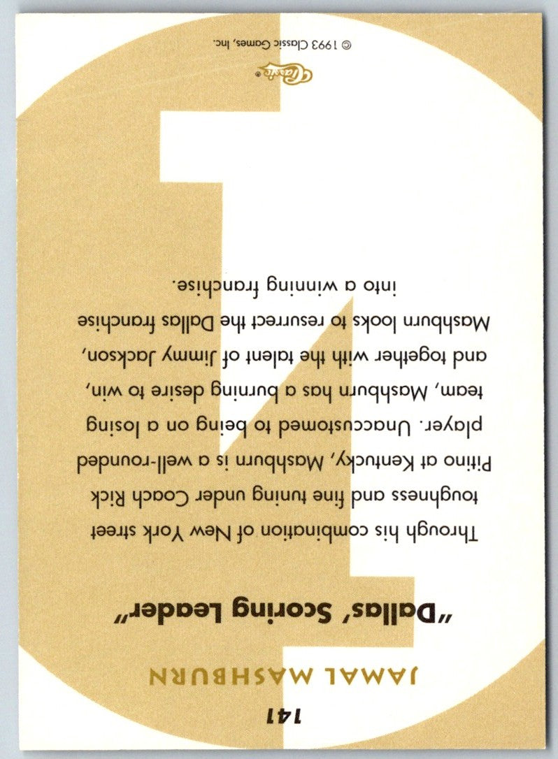 This 1993 Classic Jamal Mashburn #141 card will be a great addition to any basketball card collection. With its vivid colors and sharp details, this card is sure to make a statement. Featuring a classic action shot of the former NBA All-Star, this card is a true representation of the player at the peak of his career. Perfect for any collector or as a gift for any fan of the game, this card is sure to be a collector’s item for years to come.