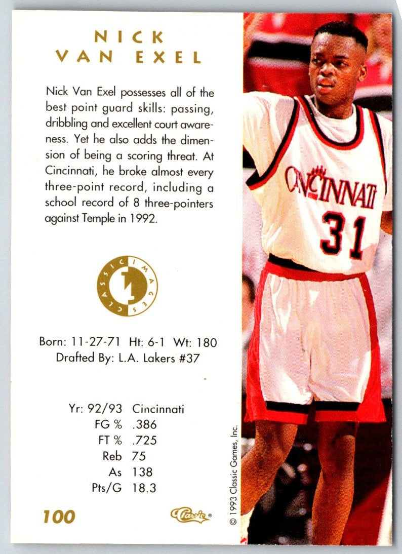 This 1993 Classic Van Exel #100 is the perfect collector's item for any NBA fan! Featuring the iconic Van Exel design, this card captures the former All-Star point guard in all his glory. With a glossy finish and sharp details, this card is sure to be a great addition to any collection. Van Exel was known for his clutch shooting and flashy playmaking, so this card is a must-have for any fan who appreciates his style of play. Get your hands on this classic card today!