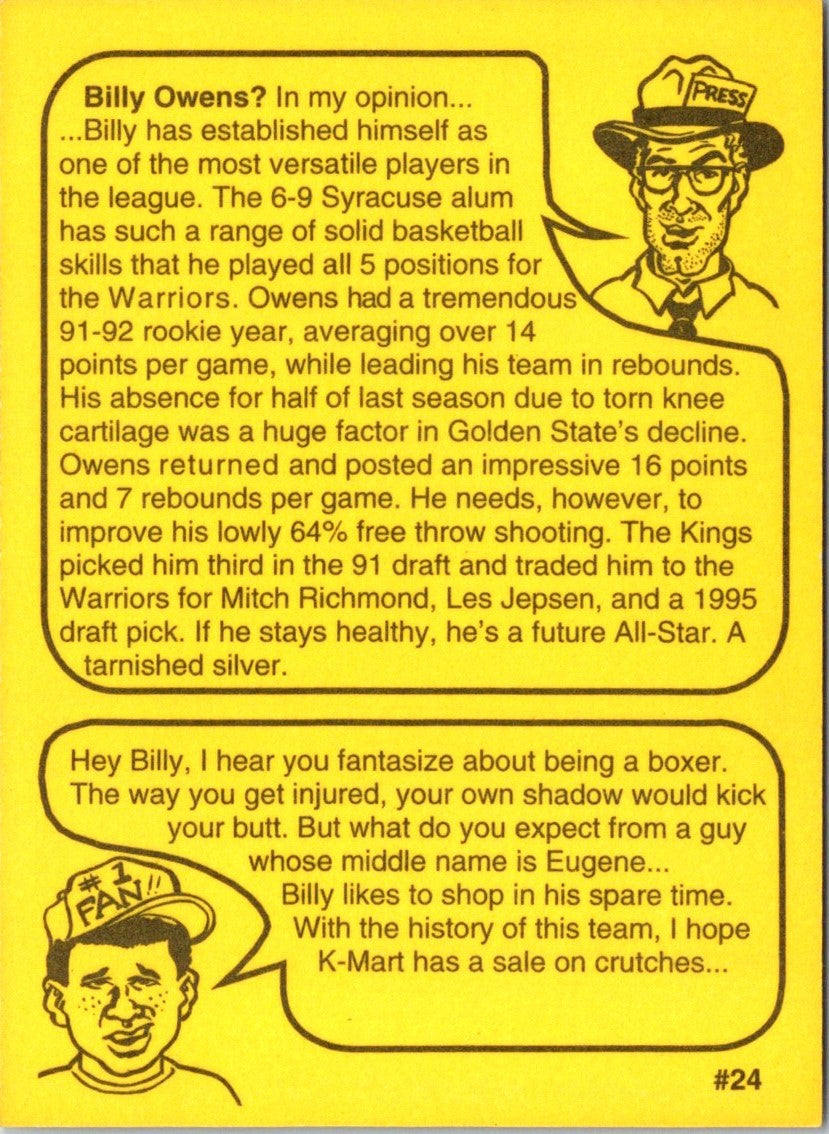 Description: 1993 First Amendment Publishing Skinnies Billy Owens #24