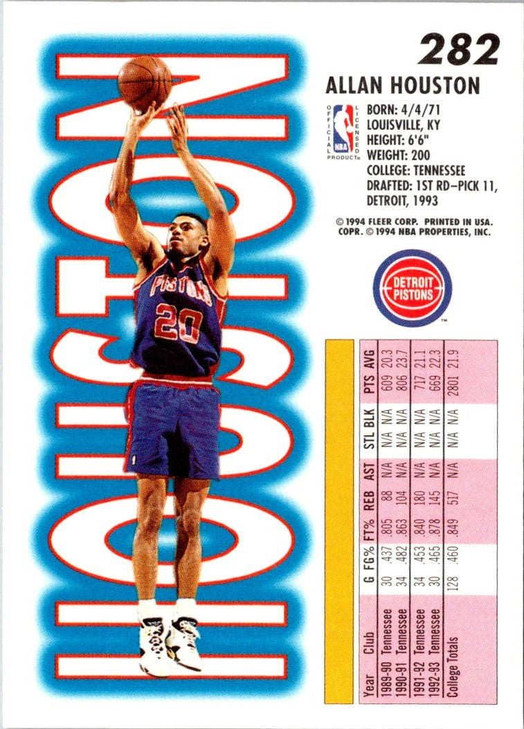 Description: 1993 Fleer Allan Houston #282 Rookie