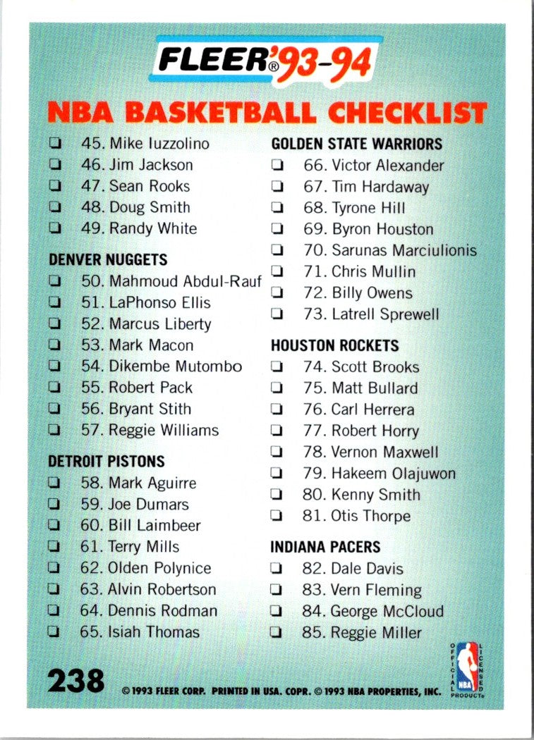 The 1993 Fleer Checklist 86-165 #239 is a one-of-a-kind card featuring an incredible design and vivid colors. This card will be a great addition to any card collection, boasting an unbeatable combination of quality and affordability. Show off your collection with this beautiful card that is sure to impress!