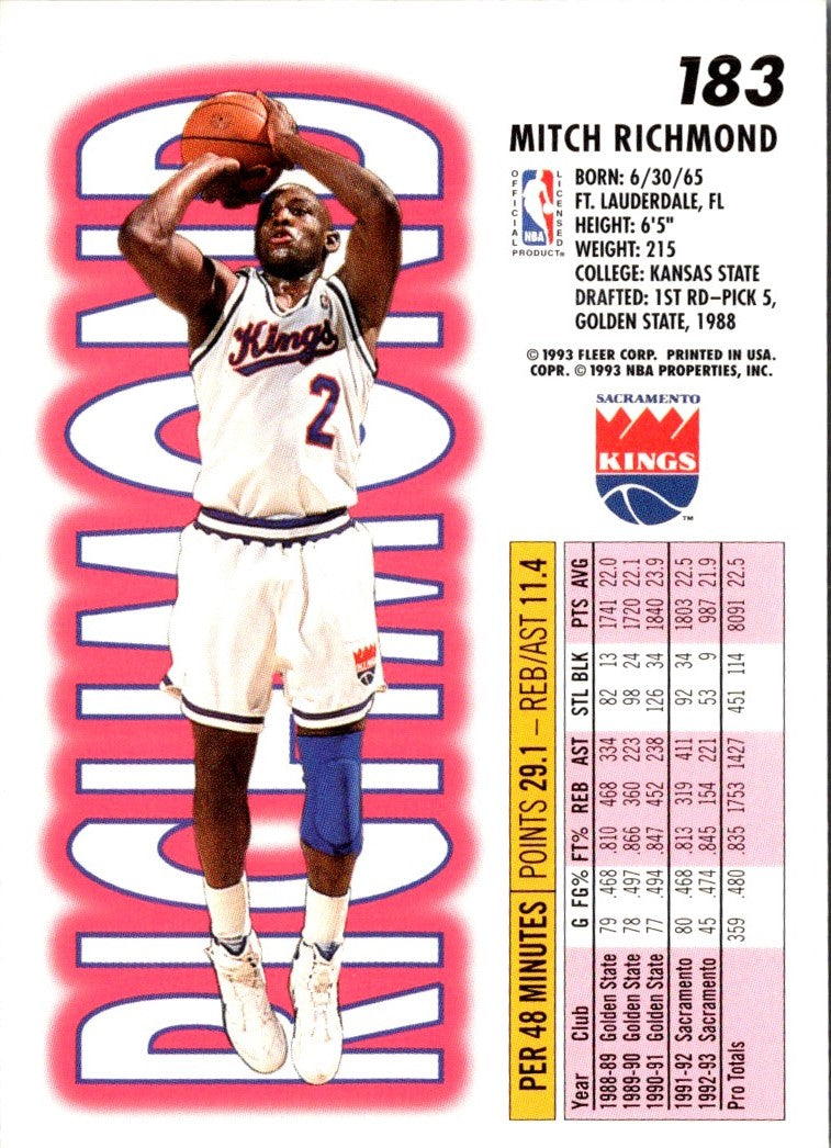 Description: 1993 Fleer Mitch Richmond #183