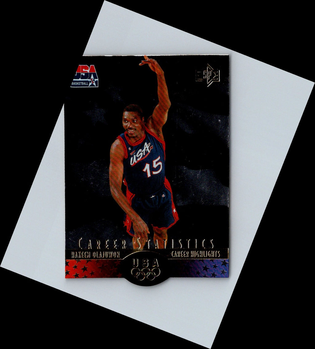 The 1993 Fleer NBA Superstars Hakeem Olajuwon #15 Houston Rockets card is a must-have for any basketball fan! This card captures the dynamic and powerful center in action on the court wearing his iconic red and white Rockets uniform. It's a great collectible for those who appreciate the Hall of Fame career of the former number-one draft pick and two-time NBA champion. The card features a stunning high-quality photo of Olajuwon, along with his name and team logo. Add this one-of-a-kind card to your collection today!