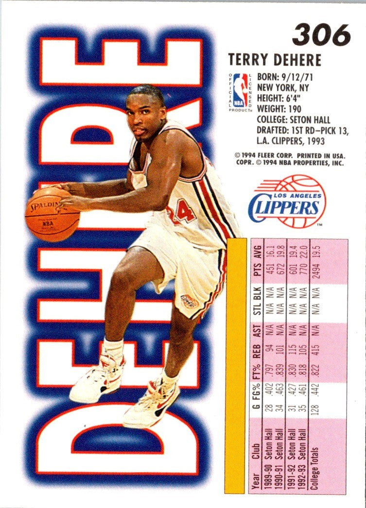 Description: 1993 Fleer Terry Dehere #306 Rookie