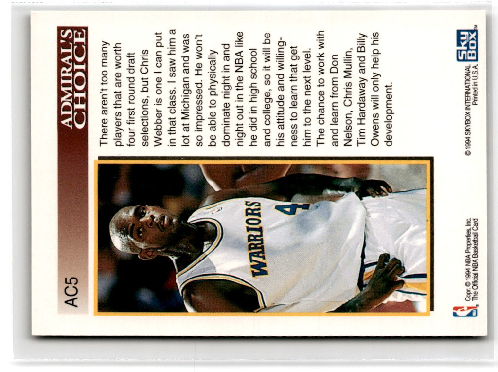 Description: 1993 Hoops Admiral's Choice Chris Webber #AC5