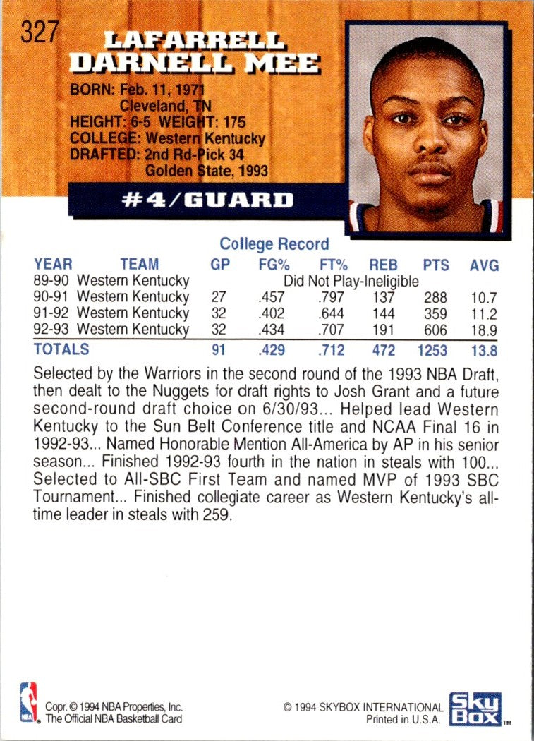 Description: 1993 Hoops Darnell Mee #327 Rookie