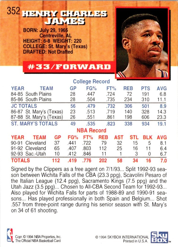 Description: 1993 Hoops Fifth Anniversary Gold Henry James #352