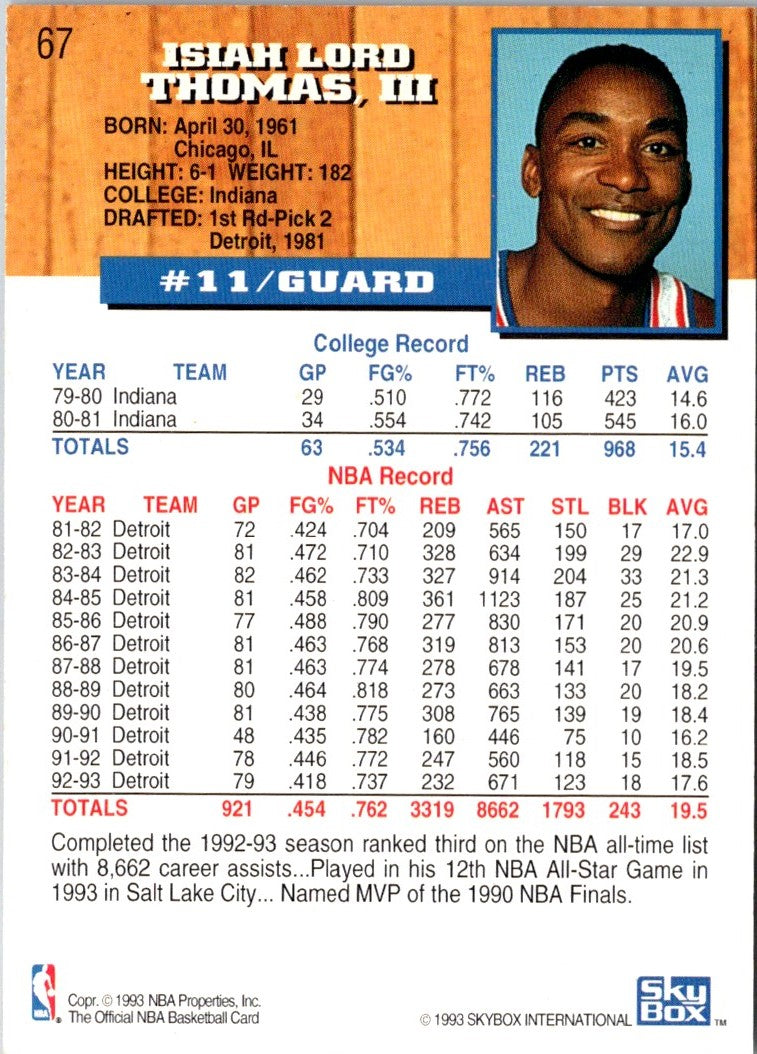 Description: 1993 Hoops Fifth Anniversary Gold Isiah Thomas #67