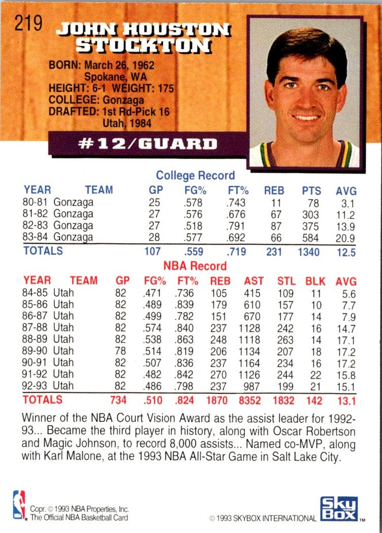 This 1993 Hoops John Stockton #219Utah Jazz card is a must-have for every fan of the legendary John Stockton and the Utah Jazz. This card features an action shot of Stockton mid-game, with his signature #12 jersey and a fierce expression on his face. It captures a moment in time when Stockton was one of the most dominant point guards in the NBA. The card is in mint condition and is perfect for any fan looking to add a piece of basketball history to their collection.