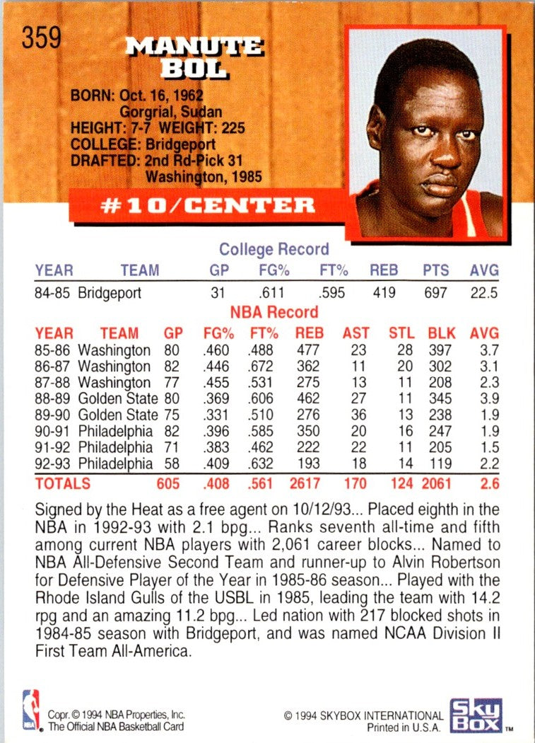 Description: 1993 Hoops Manute Bol #359