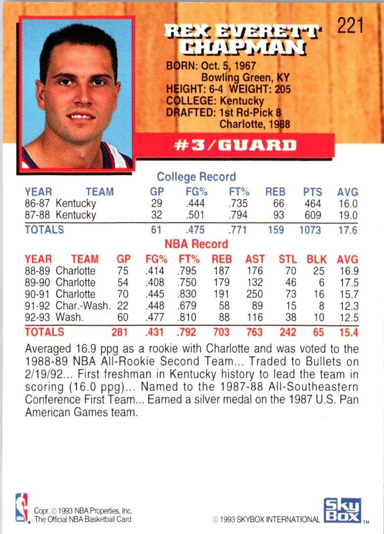 1993 Hoops Rex Chapman #221