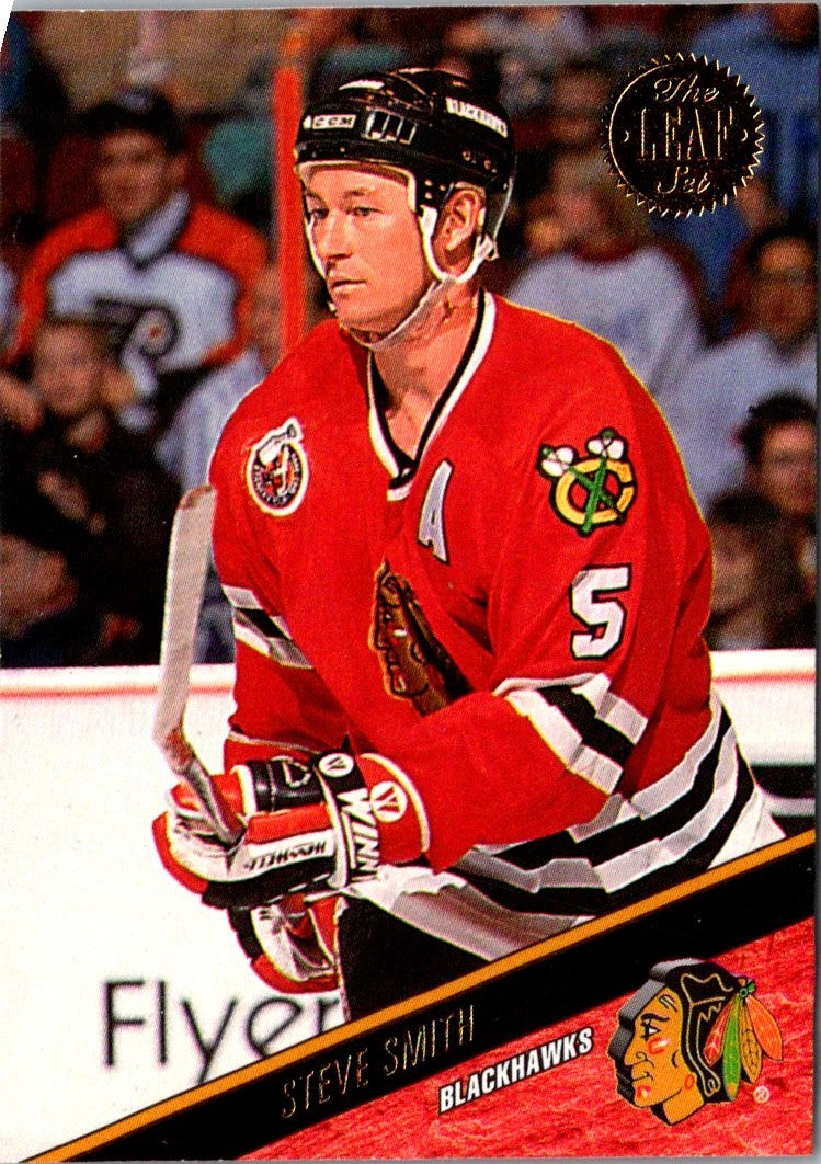 This 1993 Leaf Steve Smith #95 Chicago Blackhawks card offers a great way to commemorate one of the NHL's most beloved players. The card features a full-color glossy image of Smith in his iconic Blackhawks jersey, with a detailed background of the United Center. It is a must-have for any collector or fan of the Blackhawks, or of Smith himself. The card is professionally printed on high-quality cardstock, and is sure to last for years to come. Add this card to your collection today and celebrate the legacy of Steve Smith!