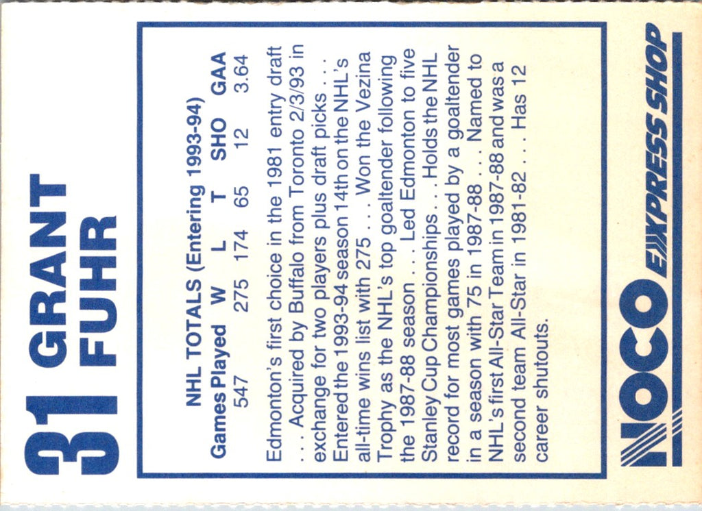 1993 NOCO Buffalo Sabres Grant Fuhr #NNO