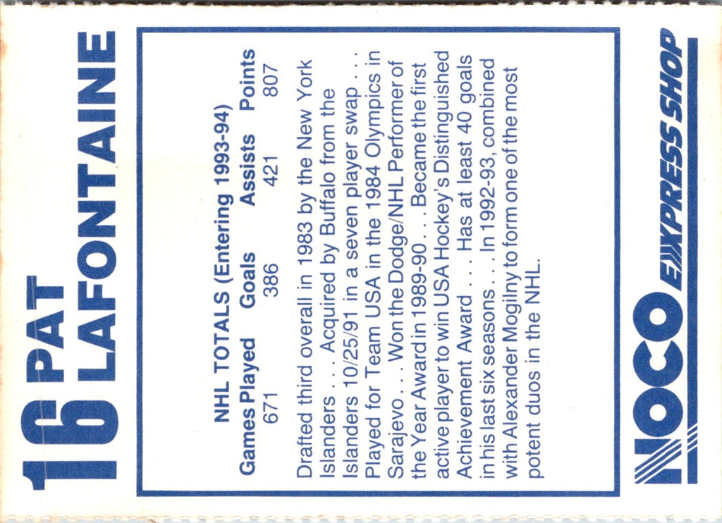 1993 NOCO Buffalo Sabres Pat LaFontaine #NNO