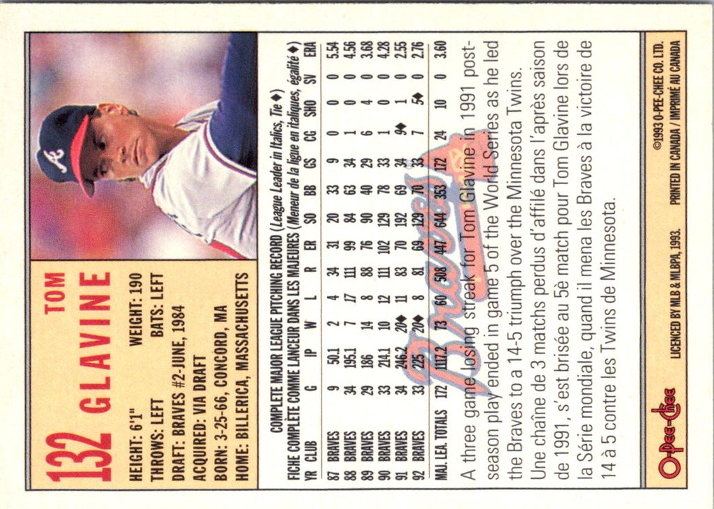 Description: 1993 O-Pee-Chee Tom Glavine #132