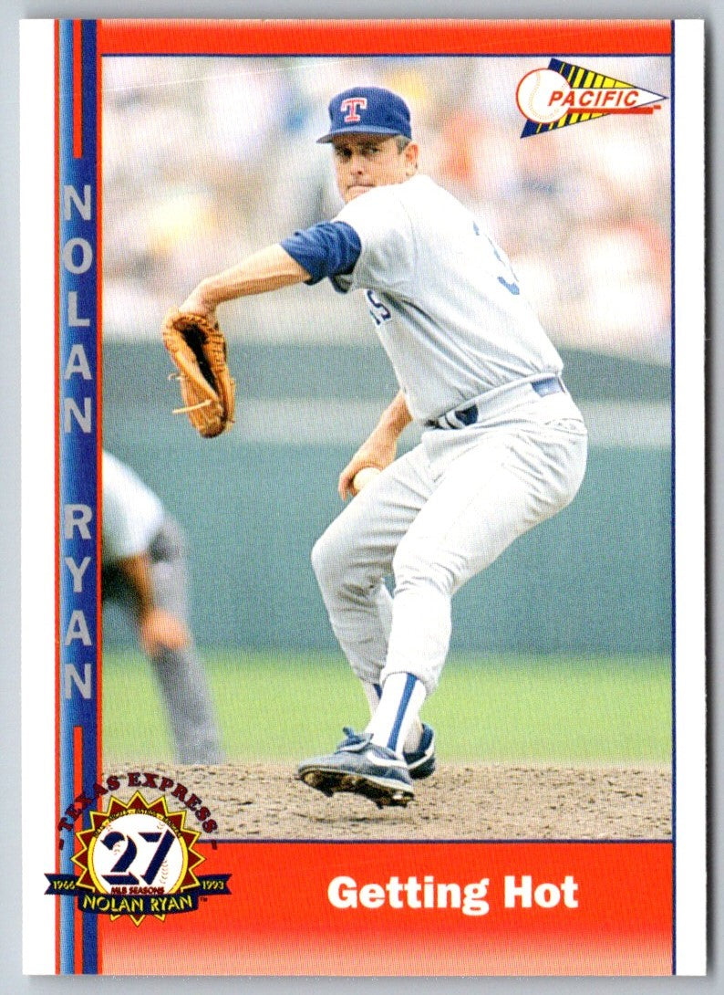 The 1993 Pacific Texas Express Getting Hot #224 Texas Rangers card is a must-have for any baseball fan. This card features a full-color photo of Nolan Ryan, the legendary Texas Rangers pitcher and Hall of Famer. The back of the card features a detailed biography of Ryan, as well as a list of his impressive career stats. This card is the perfect addition to any collection, and a great way to honor one of the greatest pitchers of all-time. Get your hands on this piece of baseball history today!