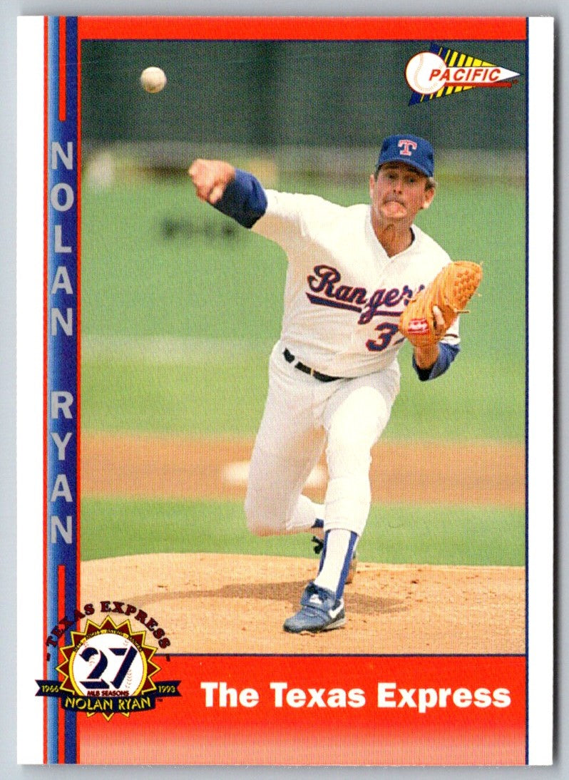 The 1993 Pacific Texas Express #249 Texas Rangers card is the perfect addition to any collection. Featuring a vibrant design of Nolan Ryan in his Rangers uniform, this classic card is sure to please. The card is printed on a thick, durable cardstock and is perfect for display. With its bold colors and unique design, it is sure to be a conversation starter. Whether you're a fan of the Rangers or just looking for a great card to add to your collection, the 1993 Pacific Texas Express #249 Texas Rangers card is the perfect way to add some Texas flair to your collection.