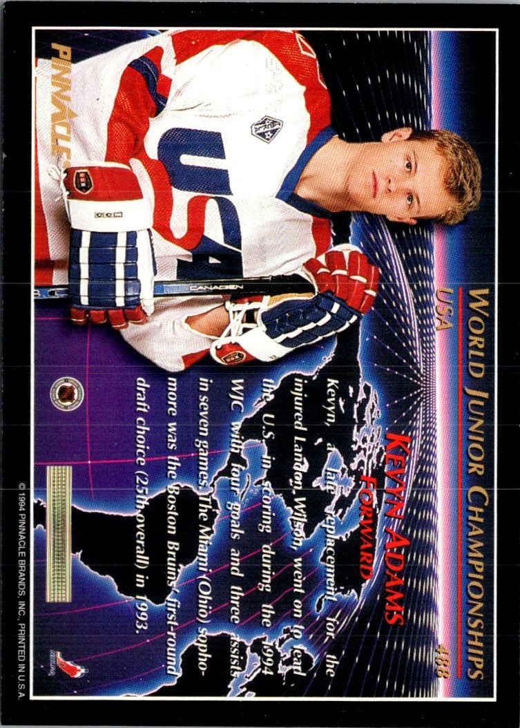 This 1993 Pinnacle Canadian Kevyn Adams #488USA card is a must-have for any hockey fan! This card features a full-color image of Adams in his classic Maple Leafs jersey, complete with an action shot of him in the midst of a slapshot. The back of the card features an array of statistics, including his jersey number, height, weight, and more. This card is a great way to show your support for Adams and the Maple Leafs, and makes an excellent addition to any collection.